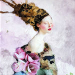 She paints with very diluted acrylic and ink, using various materials to create her identifiable style, all contributing to the "timeless and sometimes accidental journey". The material never seems under control, nor locked in a definitive form. Her artistic process fuses photography and painting. Photography is literally embedded in her canvases, lending the work a soul and substance that is adorned by the colours of the painting. She also sometimes uses shreds of torn paper - either lace or printed paper - which add relief to the work and animate the surface with splashes of bright colour, embellishing silhouettes that do not have a clear outline; instead, it is the colour that defines the shapes and gives them life, liberating them to escape and spread, apparently dissolving the provisional form.