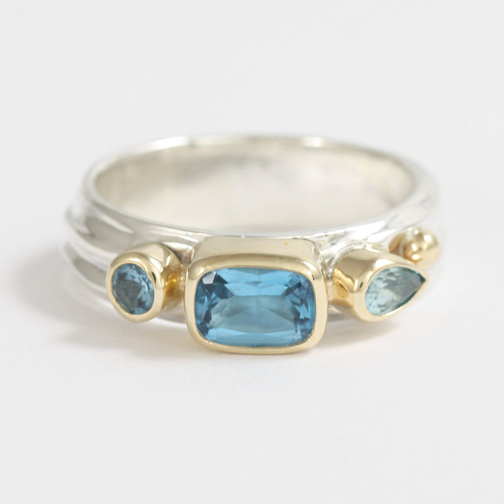 Silver, Gold, Tanzanite and Blue Topaz Ring