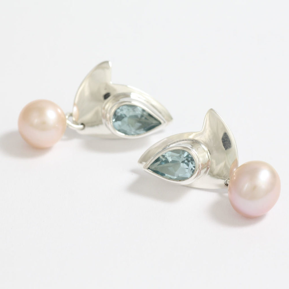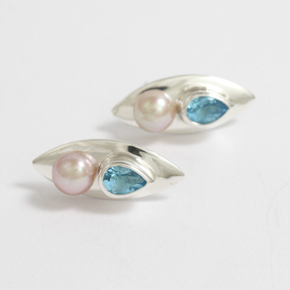 Silver, Gold, Topaz and Pink Pearl Earrings