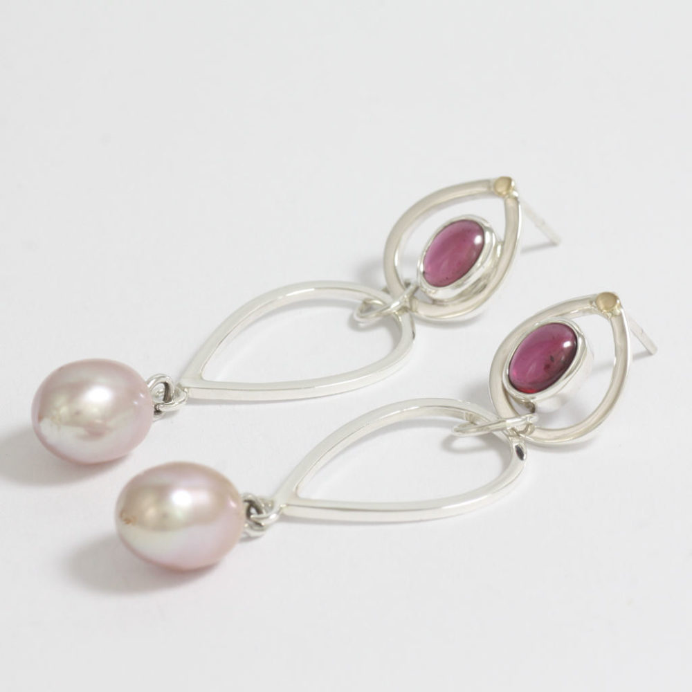 Silver, Gold, Garnet and Pink Pearl Earrings
