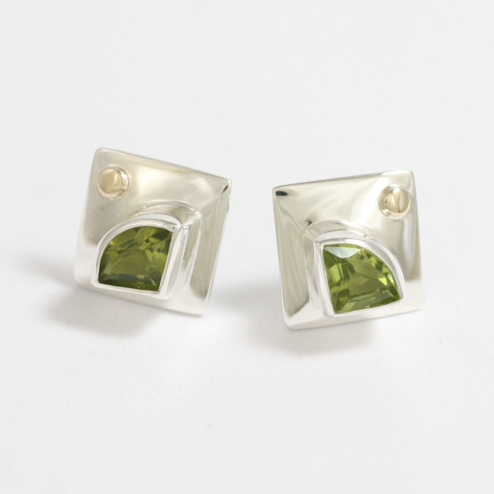 Silver, Gold, Pearl and Oval Peridot Earrings