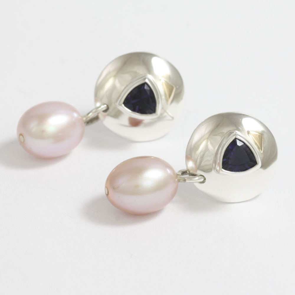 Silver, Gold, Iolite and Pink Pearl Earrings