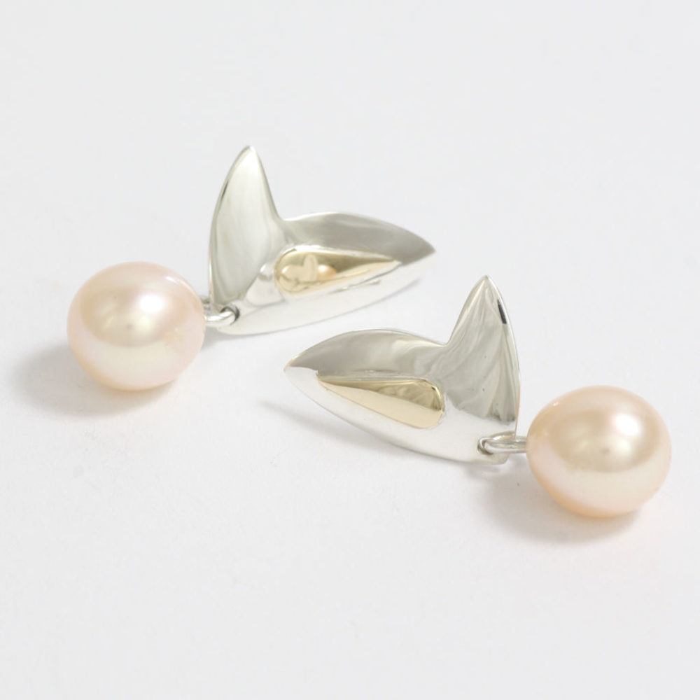 Silver, Gold and White Pearl Earrings with Heart Detail