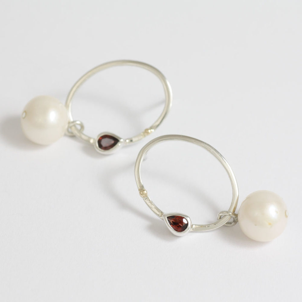 Silver, Gold, Garnet and Pearl Oval Earrings