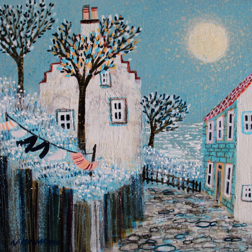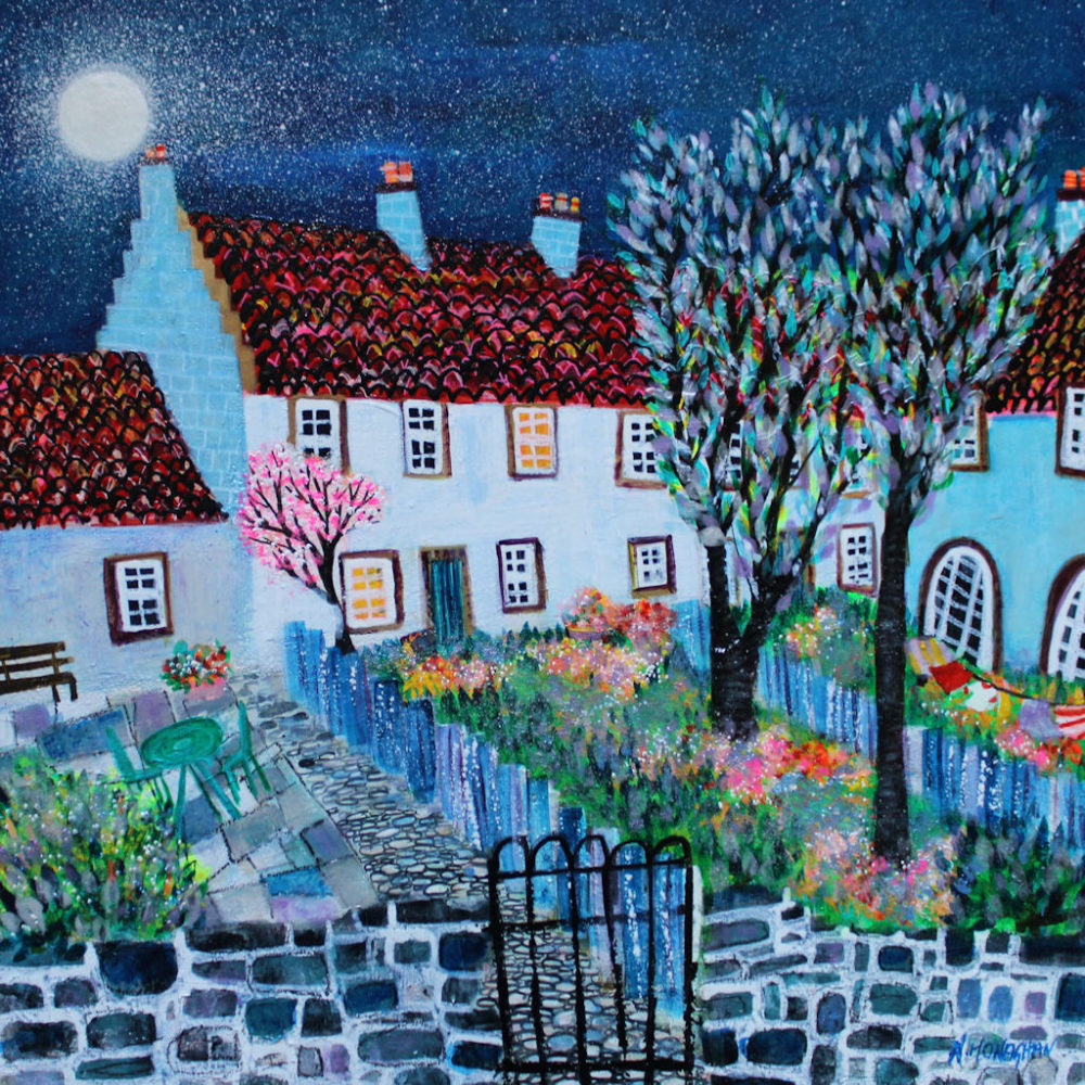 Cottages and Garden by the Moonlight by Nikki Monaghan