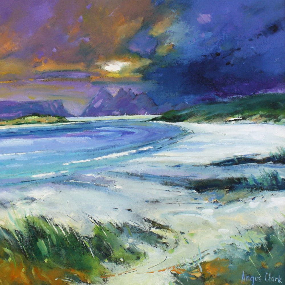 Four White Cottages, View to Mull, Tiree by Allison Young