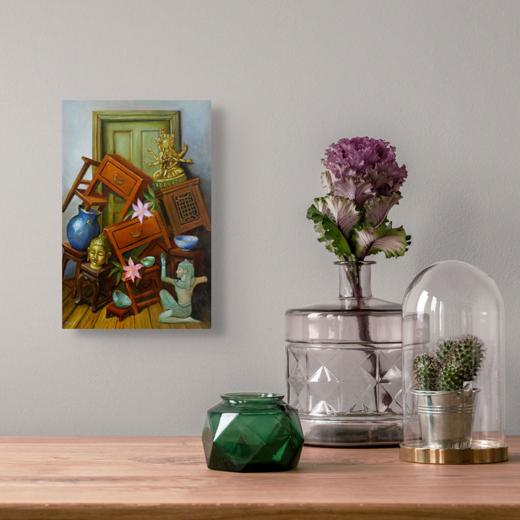 Stephanie says: “I am fascinated by the ancient Japanese art of Kintsugi, where broken porcelain is mended with streaks of gold. An object has been reborn as something new, and in my opinion, of superior beauty to before due to it’s story of resilience. My paintings are created mindfully with an emphasis on elegance, tranquility and strength being at the heart of each work.”
