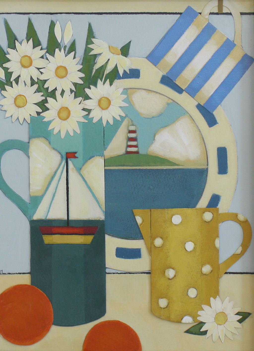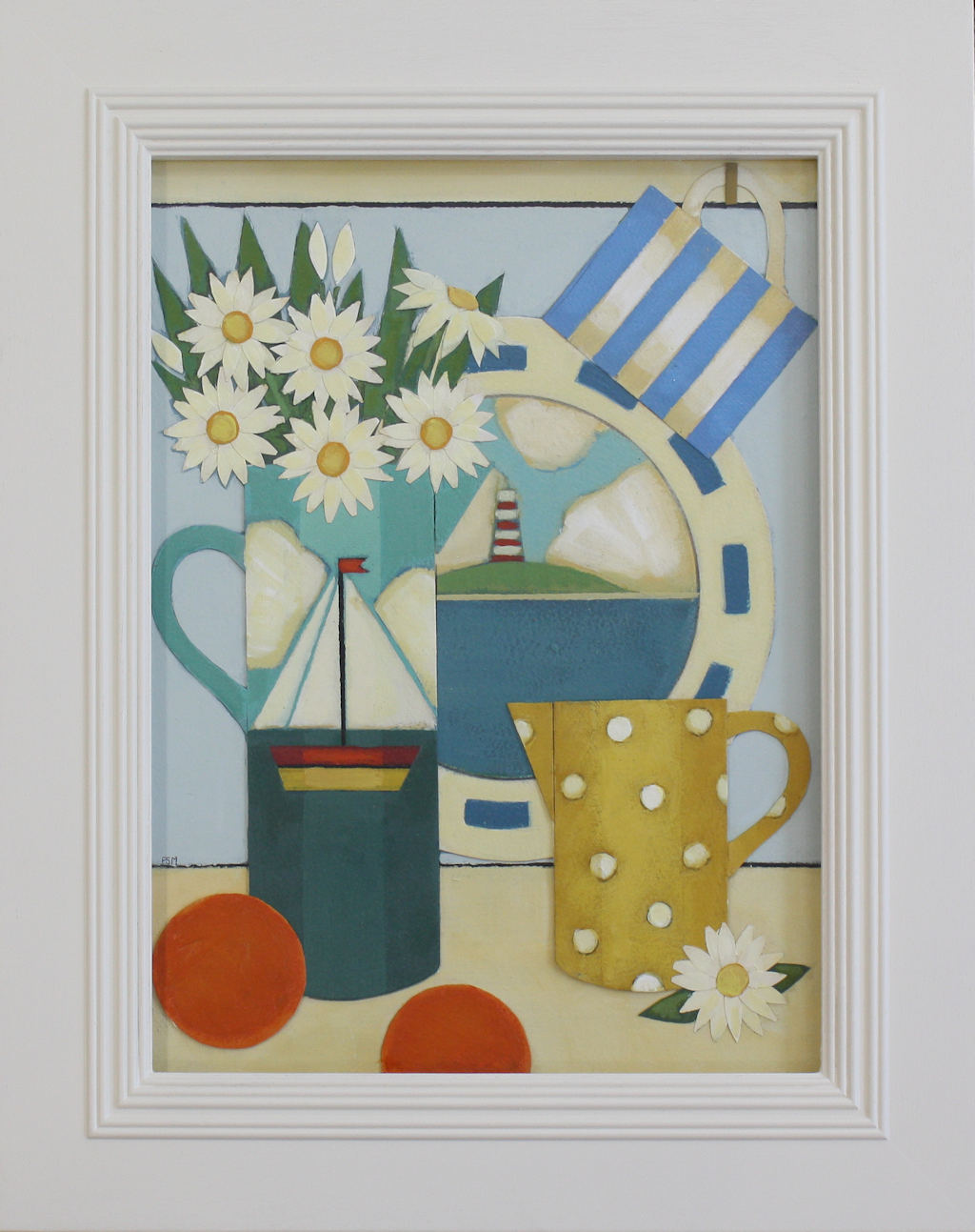Fiona’s landscapes are influenced by the coastlines and rolling hills of Galloway, where she spent a lot of her childhood. Whilst her still life paintings often feature elements of her own home and family collections. Fiona paints from accumulated memories and ideas formed over the years.