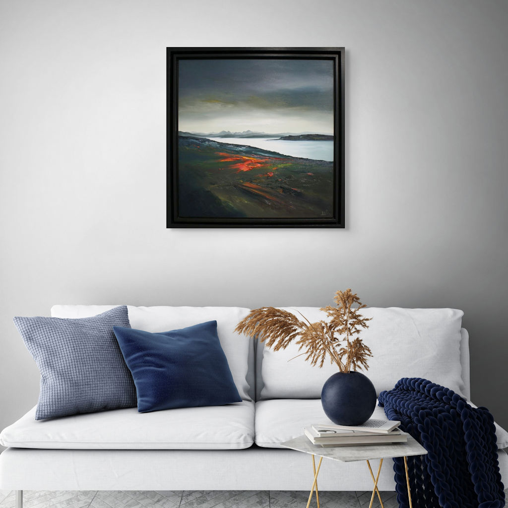 Linda’s inspiration comes from dramatic scenes she see all around her. She says: ‘I like to paint bold landscape interpretations mainly from places I have visited in Scotland and France, looking at views from acute perspectives in order to create dramatic compositions. I often revisit the places that inspire me at different times of day, in different lighting and weather conditions and in different seasons in order to capture the variations of light and textural qualities of a landscape and to bring new dimensions of scale and depth to my paintings. I work in oils with a wide variety of brushes, knives and other implements and enjoy the freedom to create a rich and evocative world of colour, movement and texture.’