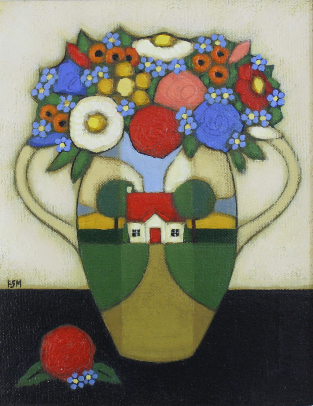 Fiona Millar is a self taught painter, living and working in the Scottish Borders. She worked as a picture framer since leaving school, specialising in hand finishes and began painting in 2000. She works mostly in acrylic, on canvas and board; occasionally creating texture with collage and gold leaf.