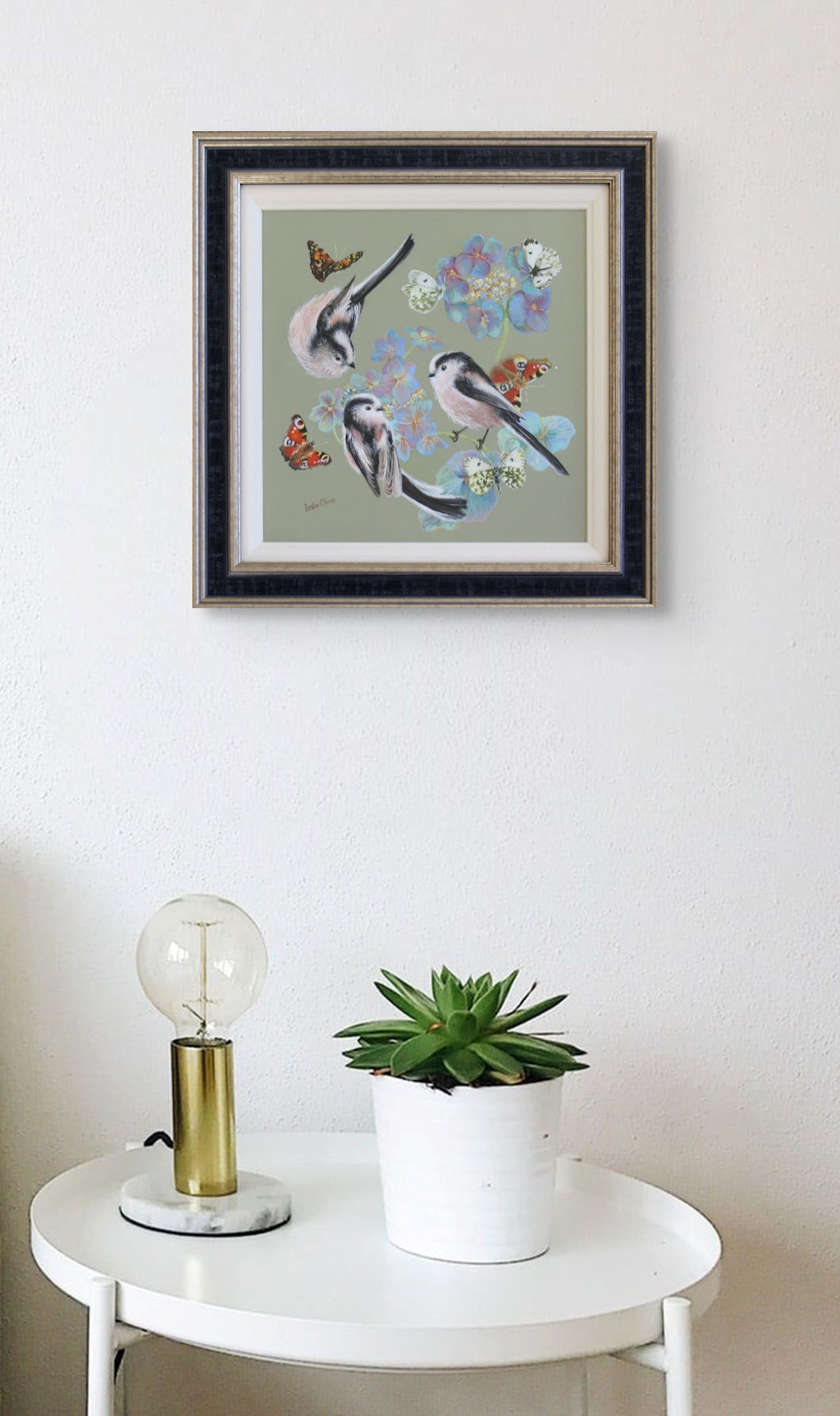 Lesley says: “My paintings reflect the fascination I have with the natural world, mostly that which surrounds me in my immediate environment. I live in the Scottish Borders, where the landscape and light is beautiful and varied – a rich source of inspiration, from Belted Galloway cattle to Scottish Blackface sheep, barn owls to wrens. I live in a small community beside a busy farm where there is an abundance of subjects to paint. As well as the Scottish landscape, animal and bird life I have a love of indoor objects of beauty too, such as precious momentos and collections…private wee secrets. I often scour my friends’ homes, armed with my camera! As well as my own creations I also enjoy private commissions, when the client specifies their favourite objects, flowers and colours. With my window scenes I try to bring the outside in so that there is a merging of environments; perhaps a blackbird or barn owl who tries his luck or a creeping vine meandering towards the window sill. A large bouquet of flowers deepens the link between interior and exterior. Usually a table holds carefully placed individual objects, each with its own story to tell, but also part of the whole coming together of the scene. There’s an entire lifetime of inspiration in all the things I love.