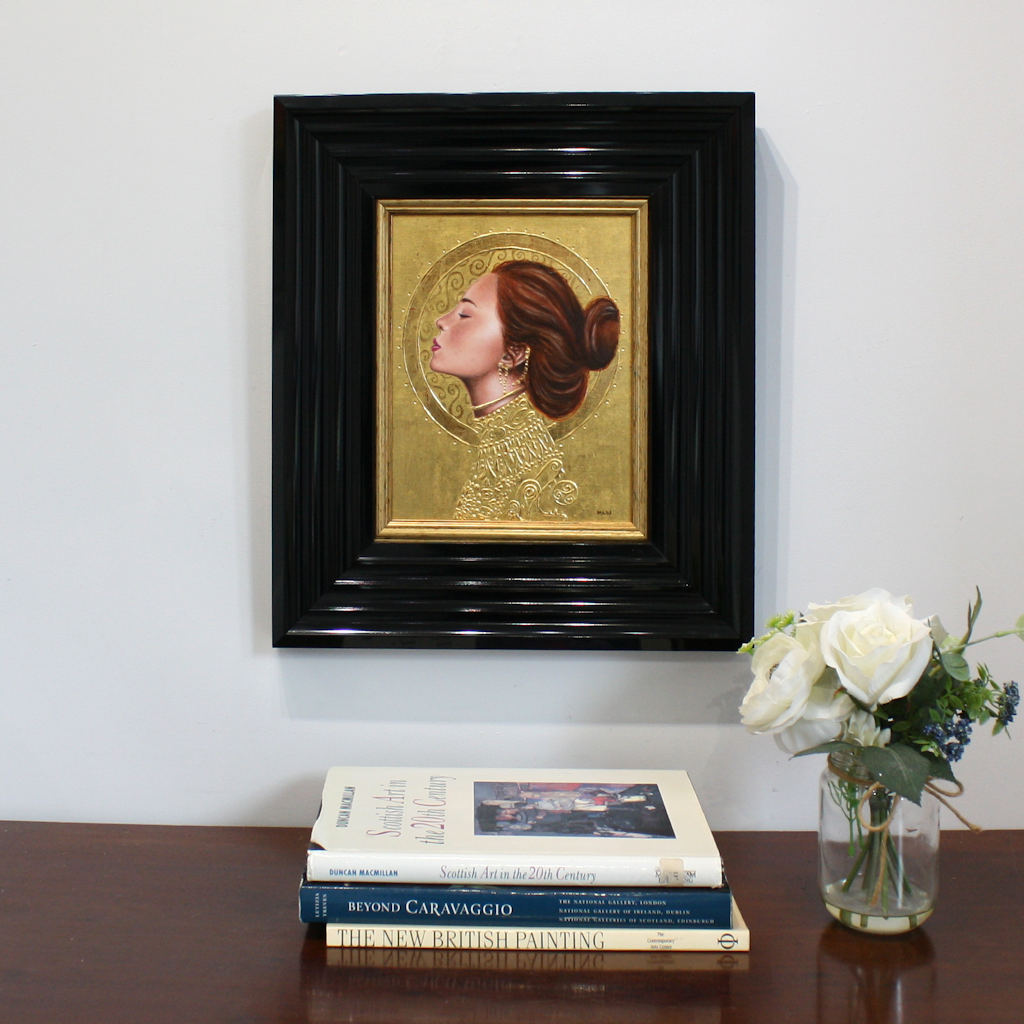 Marie’s figures enjoy playful novelties and tempting indulgences, she is embraced by the fun and fantasy, having remained in touch with her childhood spirit, Unique memories are visualised into the personality of the female figures within the paintings, the use of still life objects which the figures may be holding or arranged around her. ‘Like many people, I have been influenced and inspired by fairy tales, cartoons, films and children’s books; especially the Alice in Wonderland stories’.