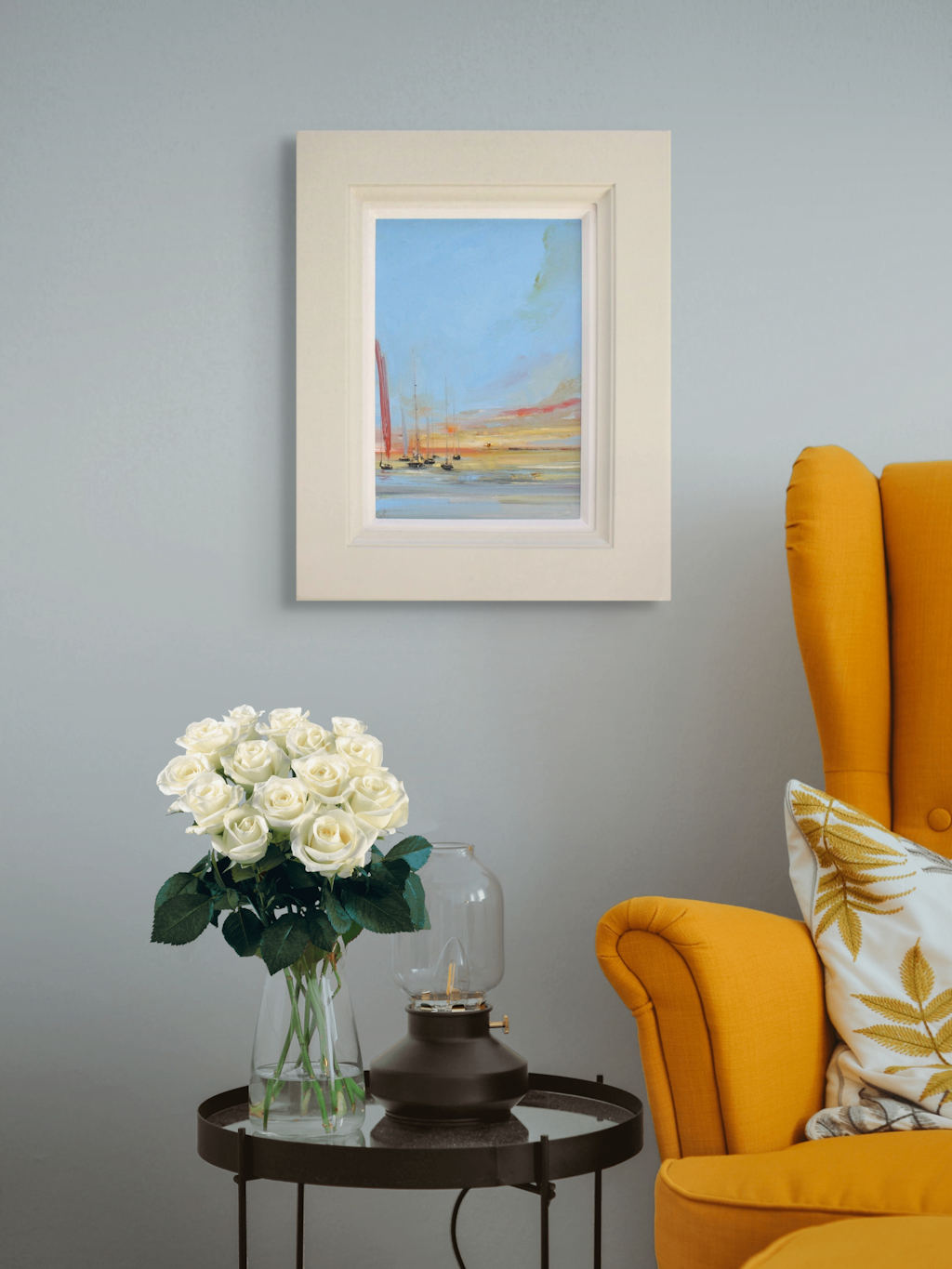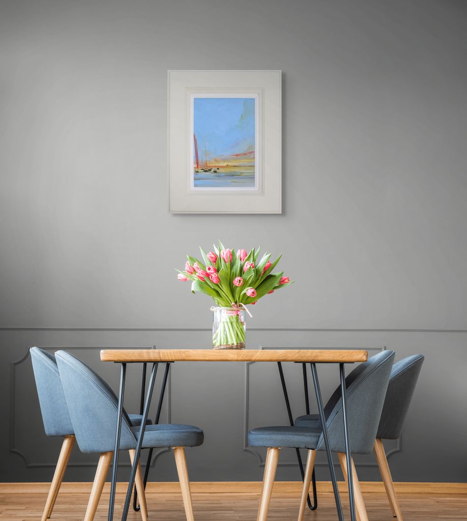 Heightened colours of sunrise, sunset, amidst calm and storm; simplified shape and blending lines are the basis of her distinctive abstract style.