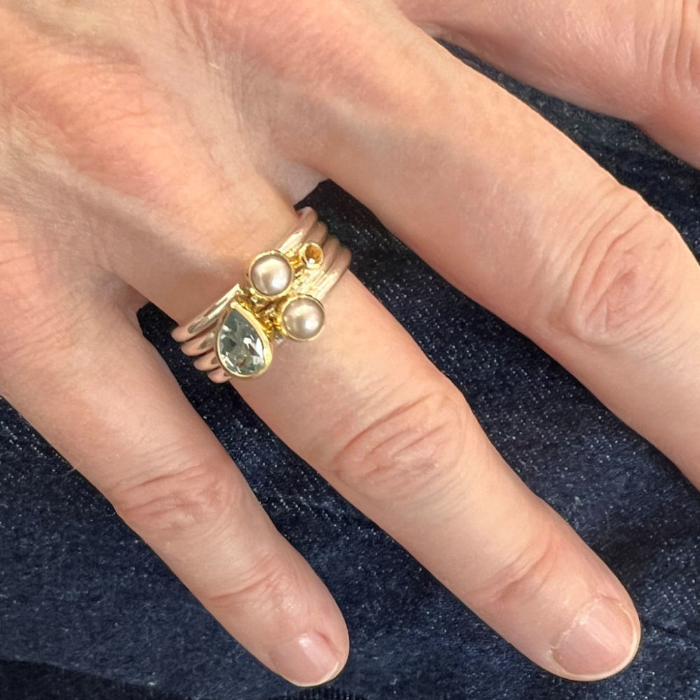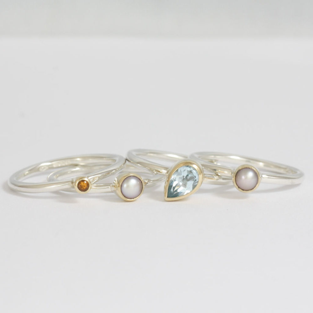 Set of Four Silver, Gold, Sapphire, Pearl and Topaz Rings