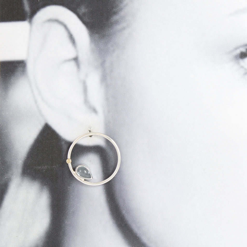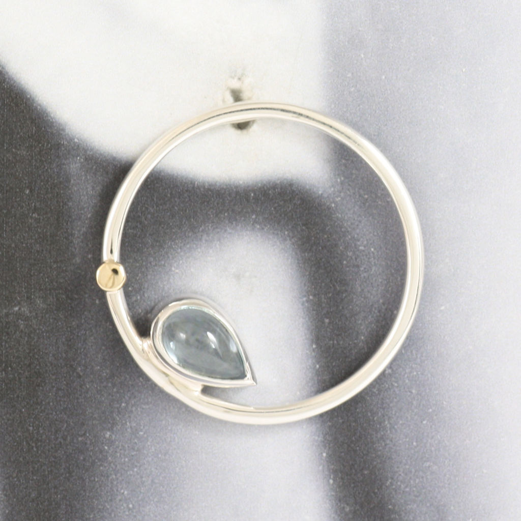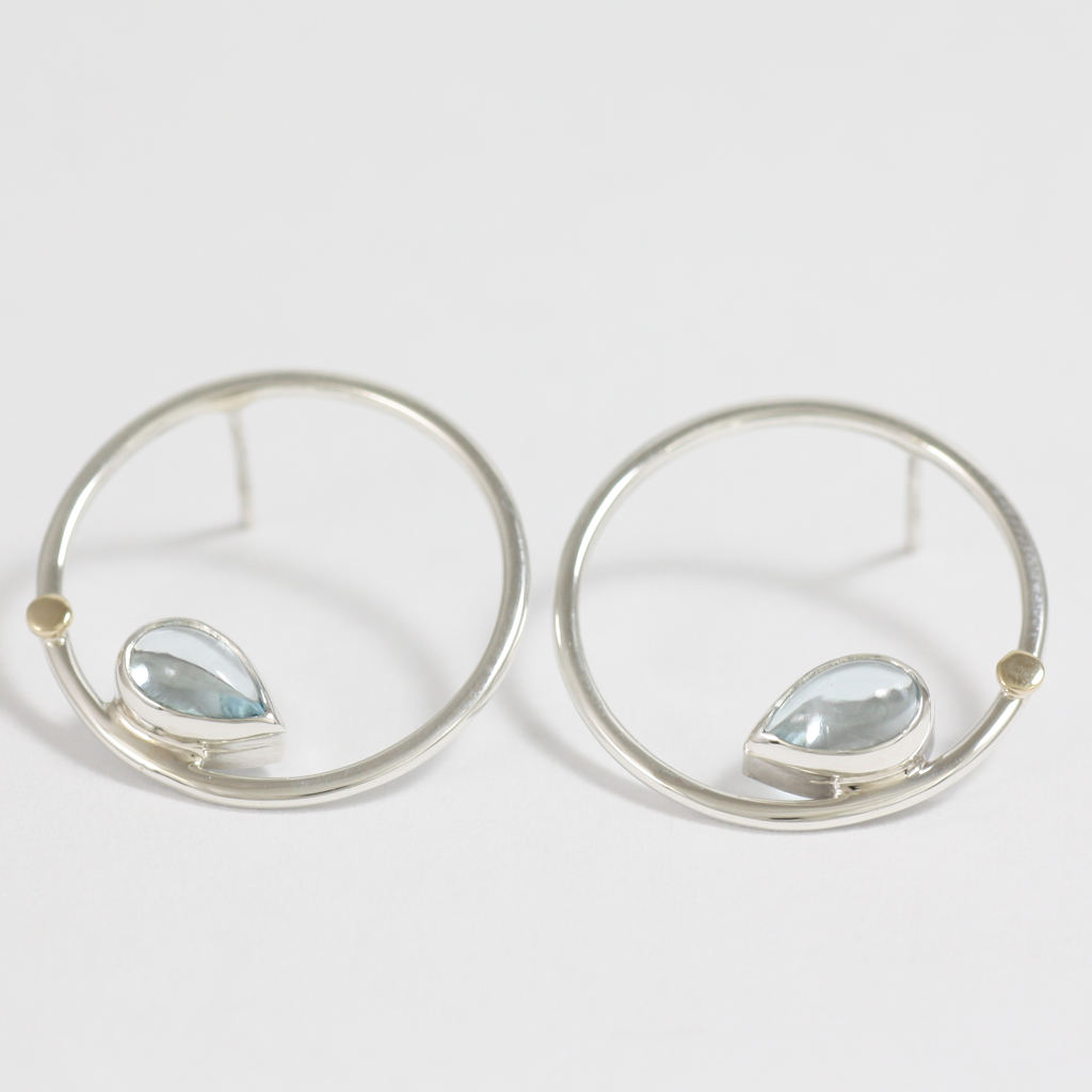 Silver, Gold and Blue Topaz Round Earrings
