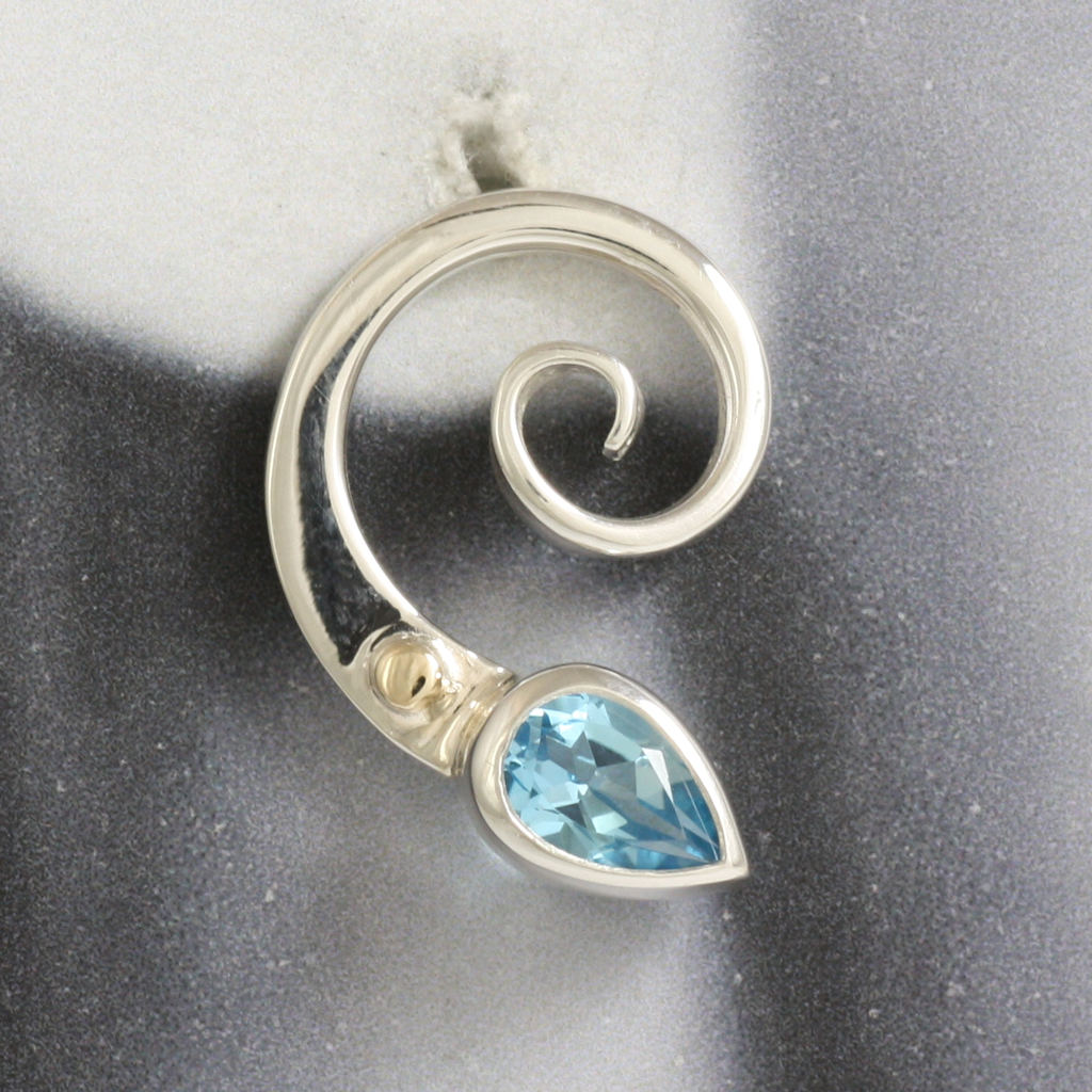 Silver, Gold and Blue Topaz Spiral Earrings