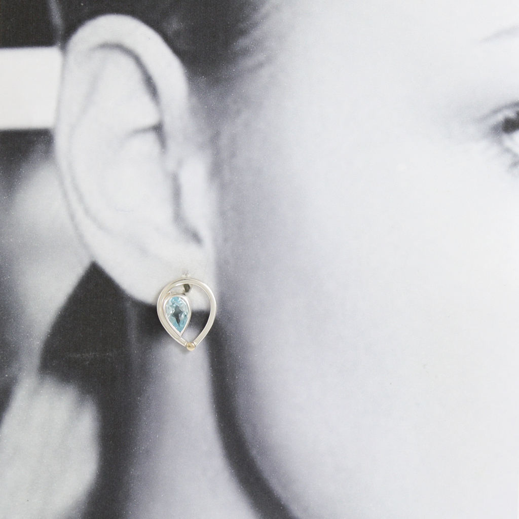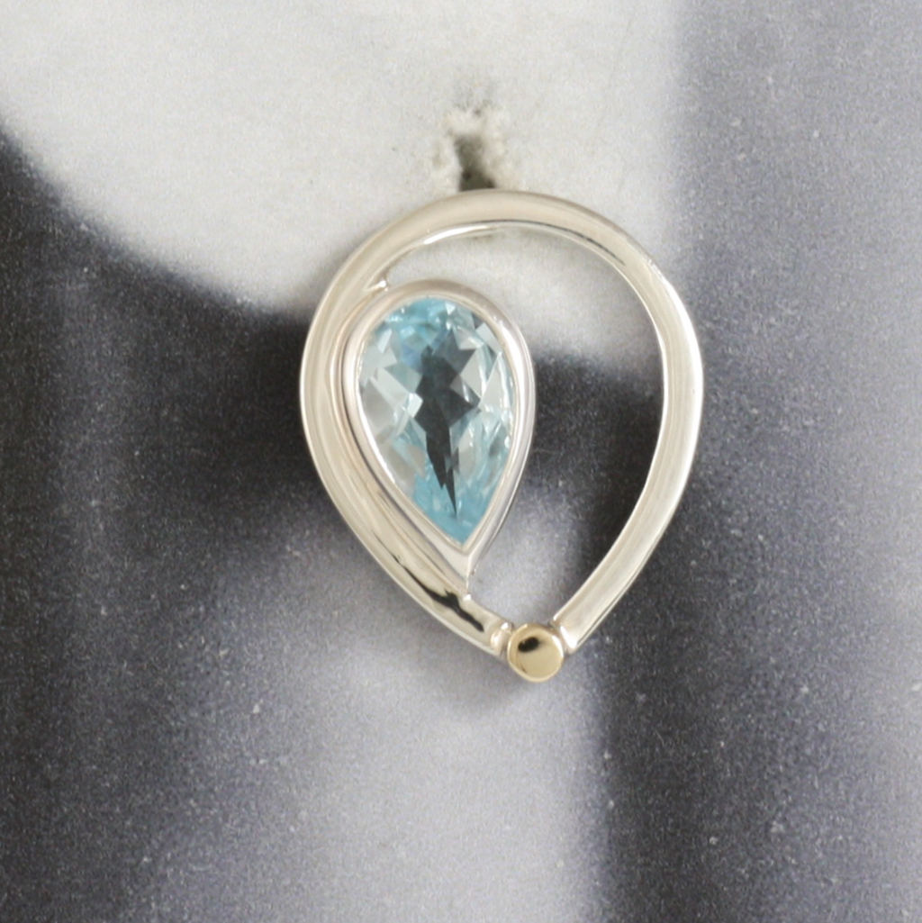 Silver, Gold and Pear Shape Blue Topaz Earrings