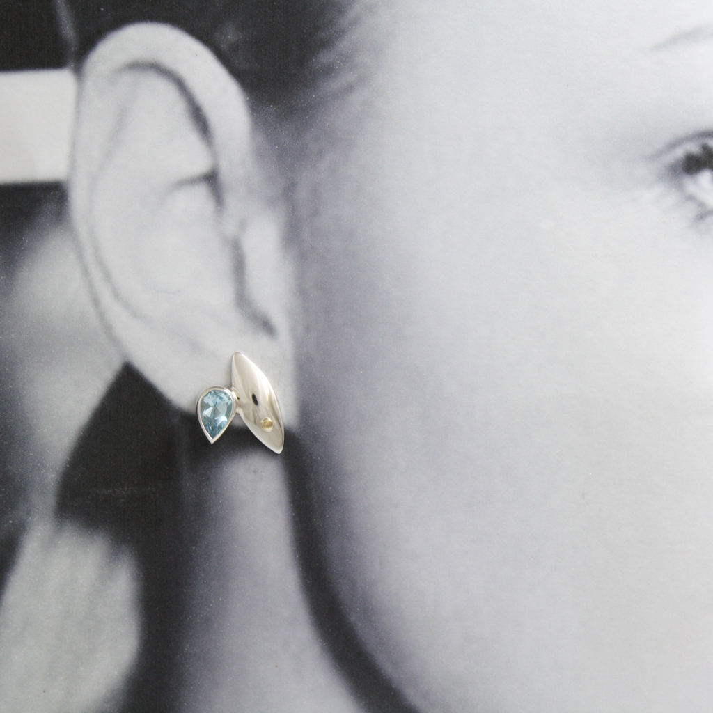 Silver, Gold and Pear Shaped Topaz Earrings