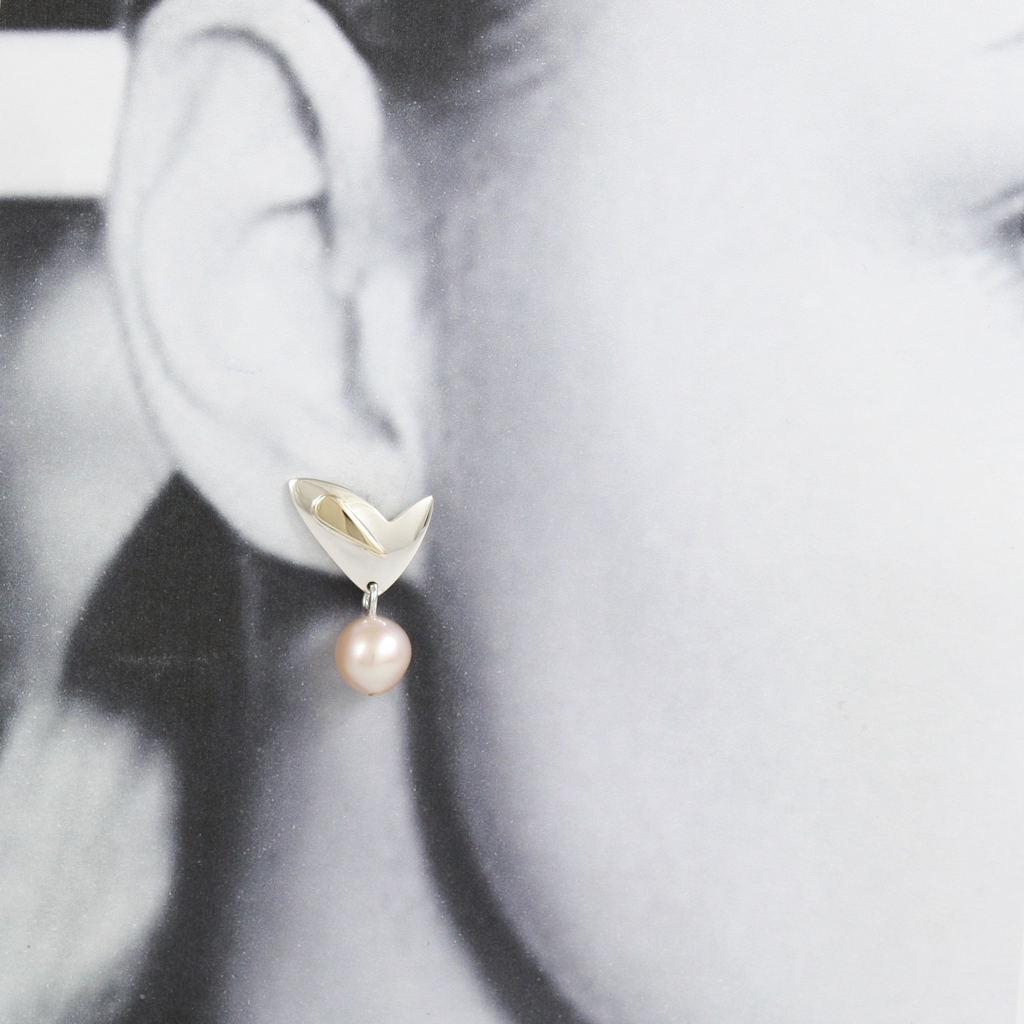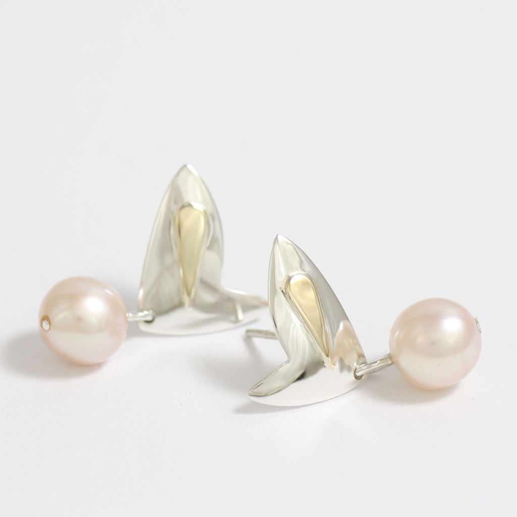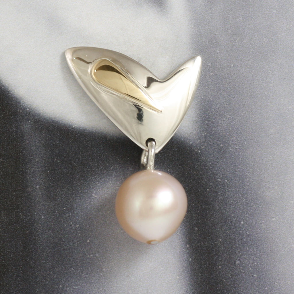 Silver, Gold and Pink Pearl Drop Earrings