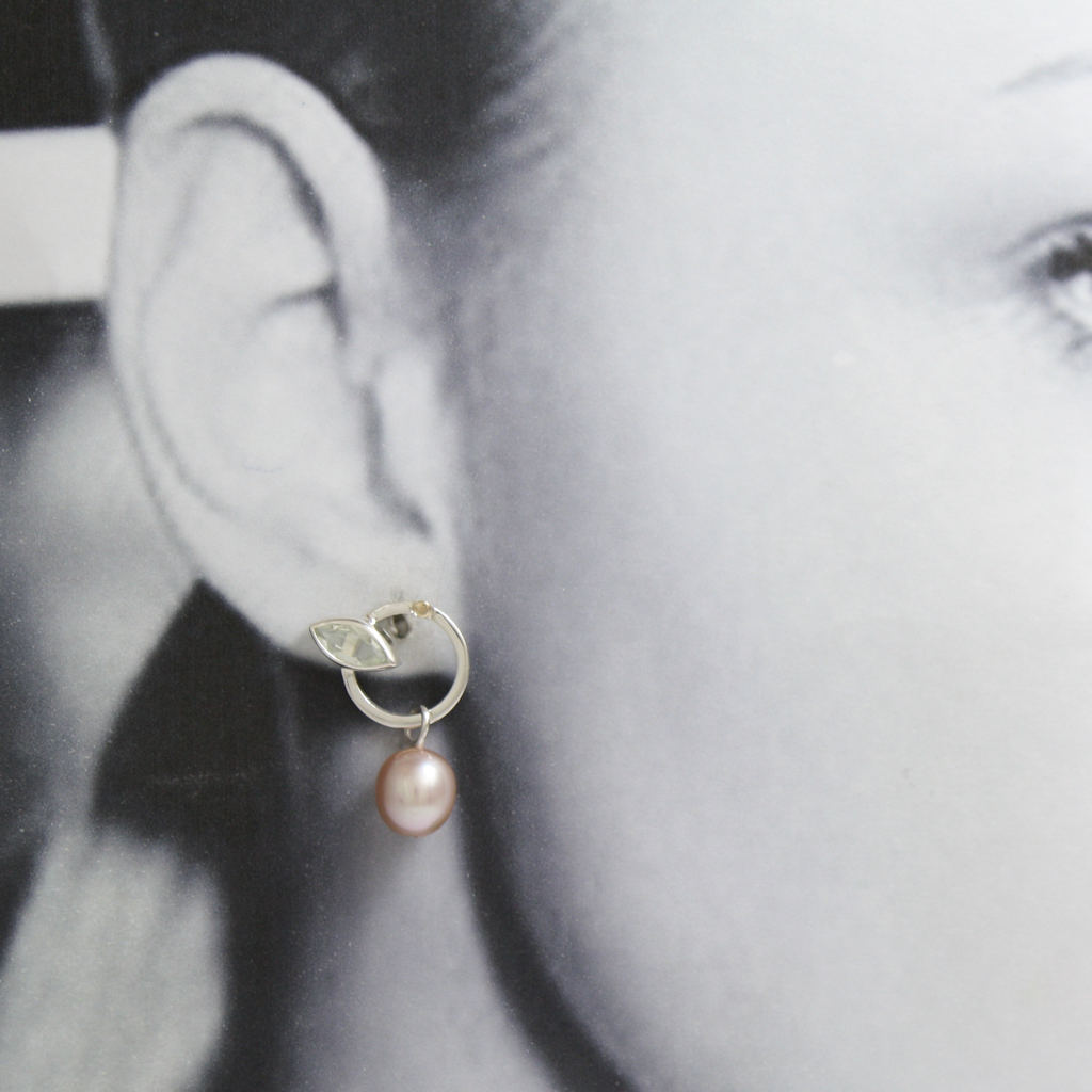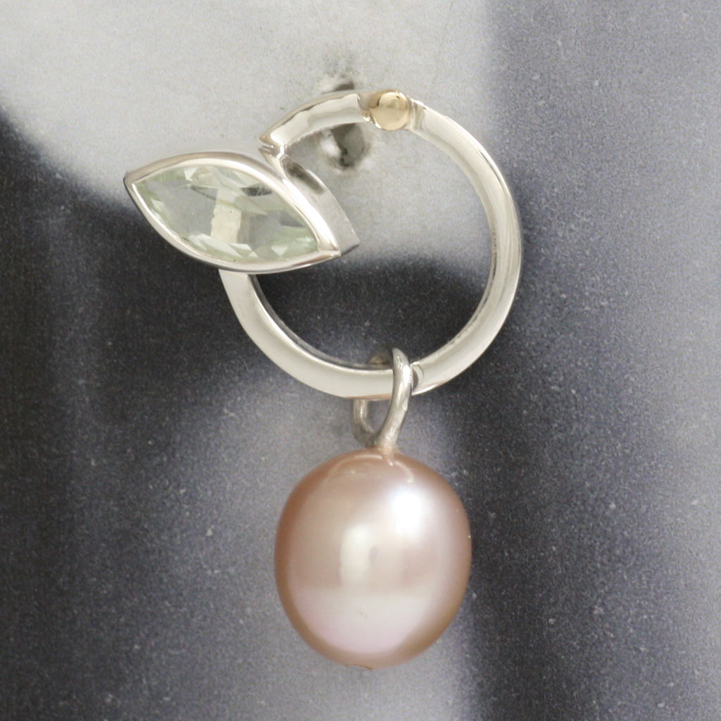 Silver, Gold, Prasiolite and Pink Pearl Earrings